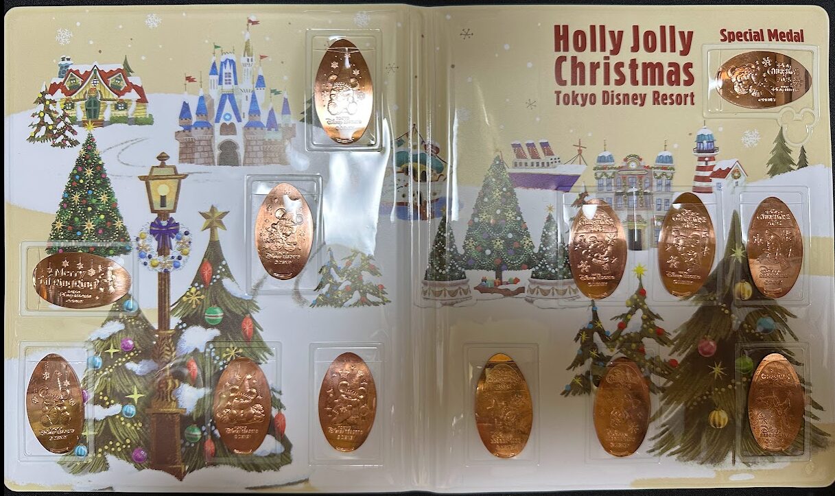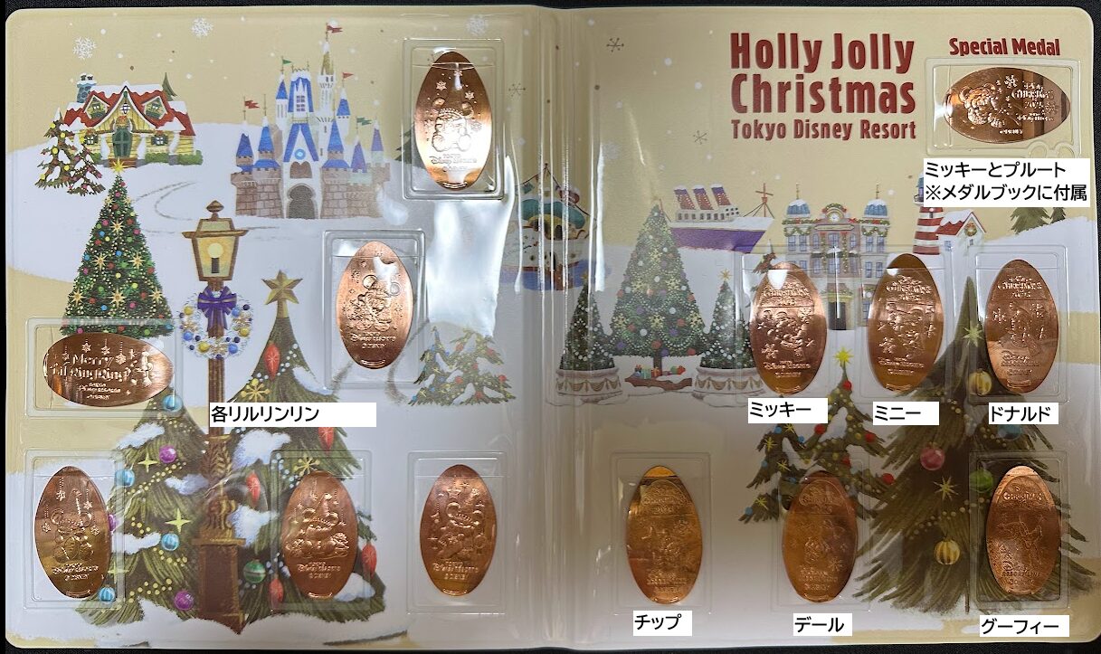 ネットで探してもこれを埋めている人がいなくて、なら埋めてるところを撮影しようと集めた「2025年クリスマス仕様スーベニアメダルブック」をご紹介!