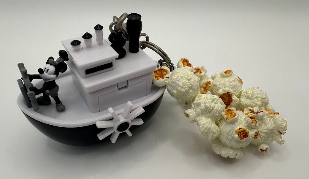 『蒸気船ウィリー』のポップコーンバケットを、そのまま小さくしたミニチュアキーチェーン。