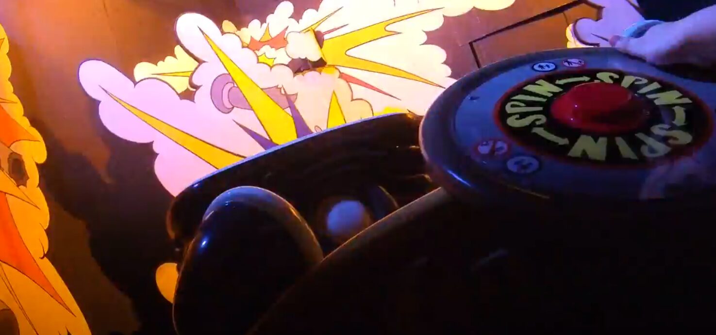このアトラクションの最大の特徴として、自分でハンドルを操作してキャブを360度自由にスピンさせられることです!