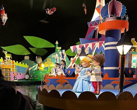 ボートに乗り込むと、そこは世界中の子供たちが各国の民族衣装で「小さな世界」を歌う、平和と喜びに満ちた世界が広がります。